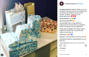 On Friday, the dad-of-two posted a picture of all the presents his newborn has received, writing: “Massive thank you to my wonderful cast and crew for the presents for our brand new Danté and even one for Aurélia. Amazing. Thank you all.”