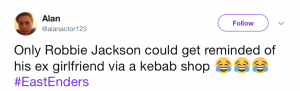 Yesterday evening’s trip to Walford left fans in stitches after Robbie Jackson spent the whole episode moping around in the wake of girlfriend Donna leaving the Square on Friday.