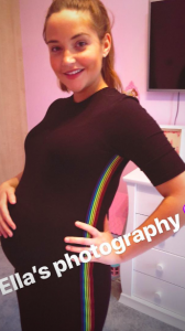 In the snap, the actress – who is expecting her second baby with former TOWIE star husband Dan Osborne – is all smiles as she proudly rests her hand on her blooming bump.