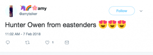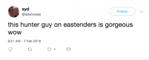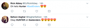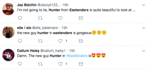 “Hunter from EastEnders is quite beautiful to look at,” gushed one viewer. “Wow Hunter,” said another.