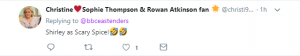 A third tweeted: Shirley as Scary Spice!” with two laughing emojis