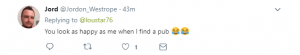 Another put: “You look as happy as me when I find a pub”.