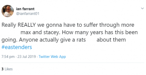 That said, I'm happy we're getting more Stacey/Max scenes. Jake Wood and Lacey Turner have some of the best chemistry in soap. #EastEnders