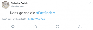 Reckon Dot dies off screen tonight and everyone on the boat survives #EastEnders