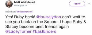 Another fan even thought that the recent storyline that involved Keanu Taylor’s dad was a hint at what is to come… @gemz03 stated: “Johnny Allen is Keanu’s daddy, that would explain why Ruby is coming back to the Square!”