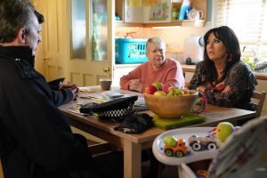 When Mick returns home Linda is pleased to see he’s more positive and even wants to speak to Johnny and Nancy after earlier refusing to take their calls.