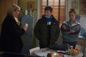 Tiff soon realises what’s going on and with Stix and the gang members waiting outside to fetch Dennis, she rushes over to the Mitchells’ to stop him.
