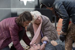 When Kat comes to after he accident, she realises she has ploughed into someone with her moped.