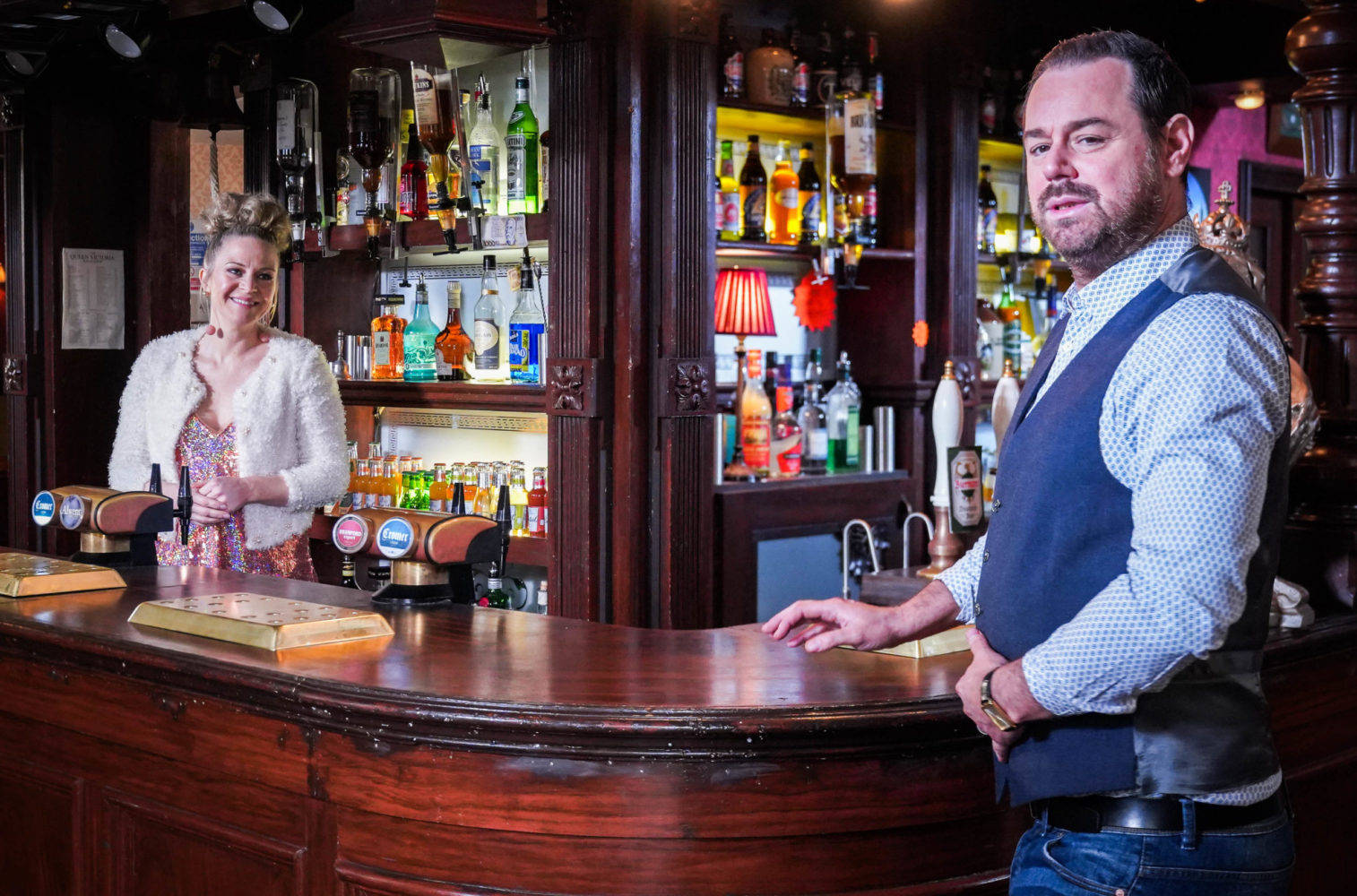 Mick and Linda are back where they belong behind the bar of the Queen Vic.