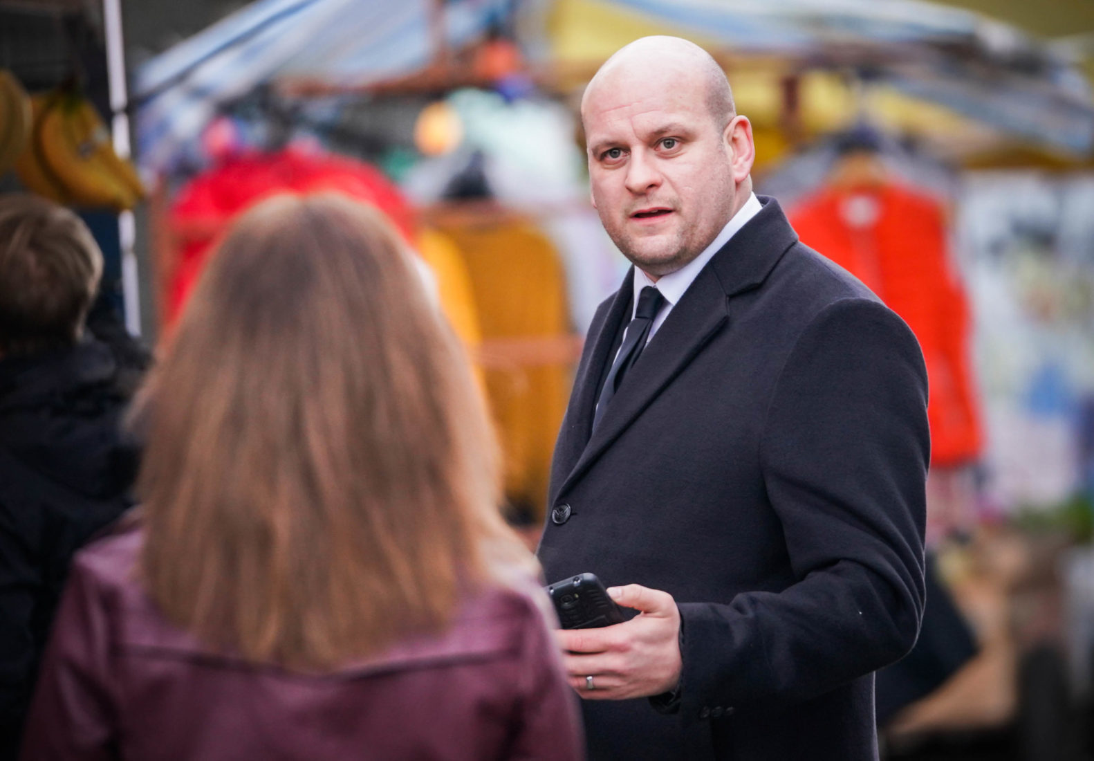 Later Mick gets a worrying message from Stuart and rushes over to find him threatening Frankie.