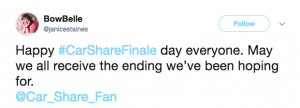 Car Share fans have taken to social media ahead of tonight’s grand finale, to share their nerves and excitement about the episode.
