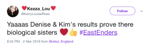 Although, the results of the letter didn’t come without it’s dramas, thanks to Kim and her bizarre greetings card mix up where Denise found a card telling her they weren’t related.