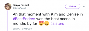 The huge mystery about whether EastEnders’ Kim and Denise Fox were actually sisters has finally been resolved – and fans are loving it!