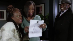 But when the results finally came though the door – viewers thought they were about to find out the truth at last… only for Kim’s daughter, Pearl, to hide the letter.