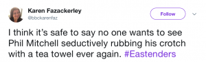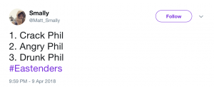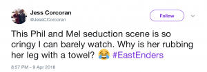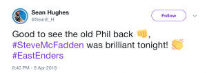 In fact the reaction to Mel and Phil’s kissing scene was so huge that it got Phil Mitchell trending on Twitter. Hurrah!