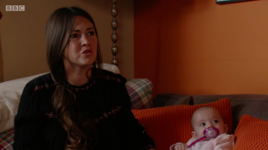 As Stacey enjoyed a cuddle with her gorgeous bubba, she was interrupted by mum Jean, Big Mo and Kat who sheepishly entered the lounge looking shady.
