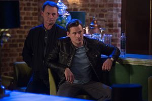 Woody and Billy listen to Phil rant while Billy puts himself in the frame by suggesting it could be an inside job.