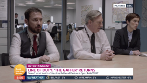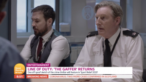 Adrian’s daytime TV appearance also included a very brief look at at Sport Relief 2020 spoof sketch based on a Line of Duty investigation featuring Hastings, Arnott and Fleming… and also Lee Mack as a bumbling solicitor.